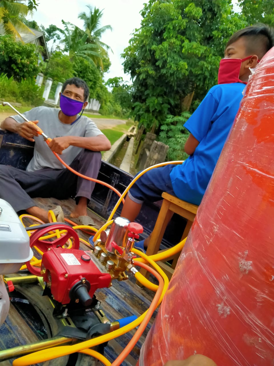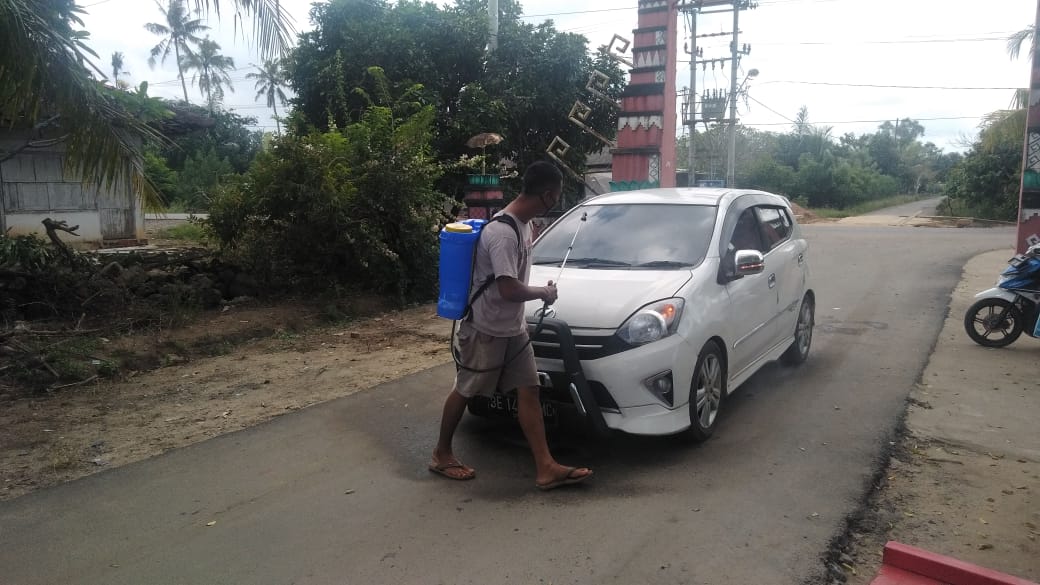 Penyemprotan Disinfektan di kampung Nunggal Rejo kecamatan Punggur