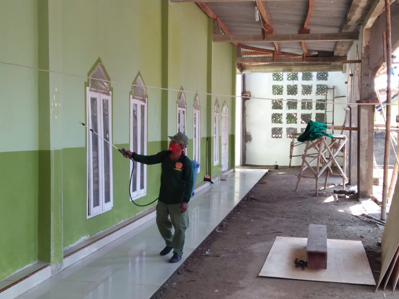 Kegiatan Relawan COVID-19, Penyemprotan Tahap ke-4 Difokuskan ke Masjid dan Mushola kampung Kotagajah