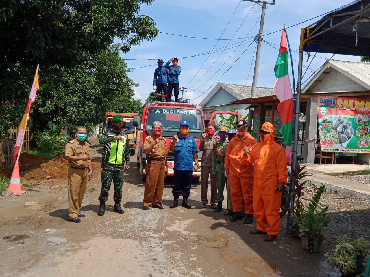 Penyemprotan Disinfektan oleh BPBD Kabupaten Lampung Tengah di kampung Kesumajaya, Bekri