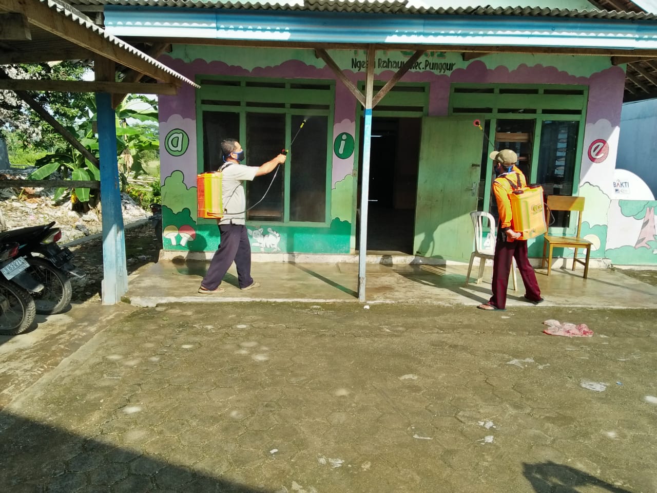 Penyemprotan disinfektan oleh SATGAS COVID-19 kampung Ngesti Rahayu, Punggur