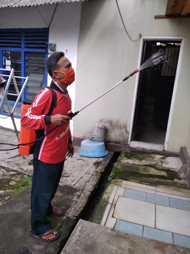 Penyemprotan Disinfektan ke Rumah Warga di kampung Sri Rahayu, Kota Gajah