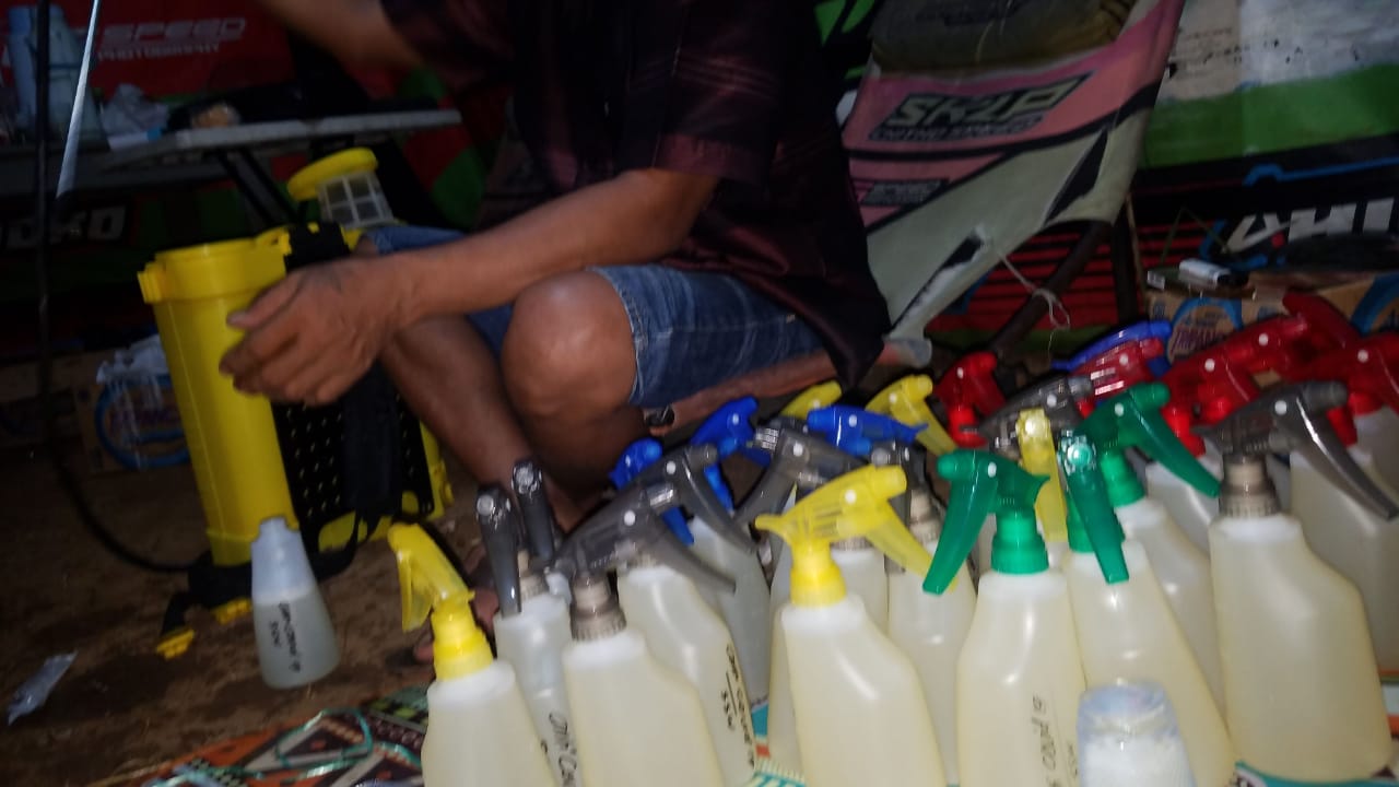 Pemberian Disinfektan Kepada Pemilik Warung yang Ada di Kampung Sri Sawahan, Punggur