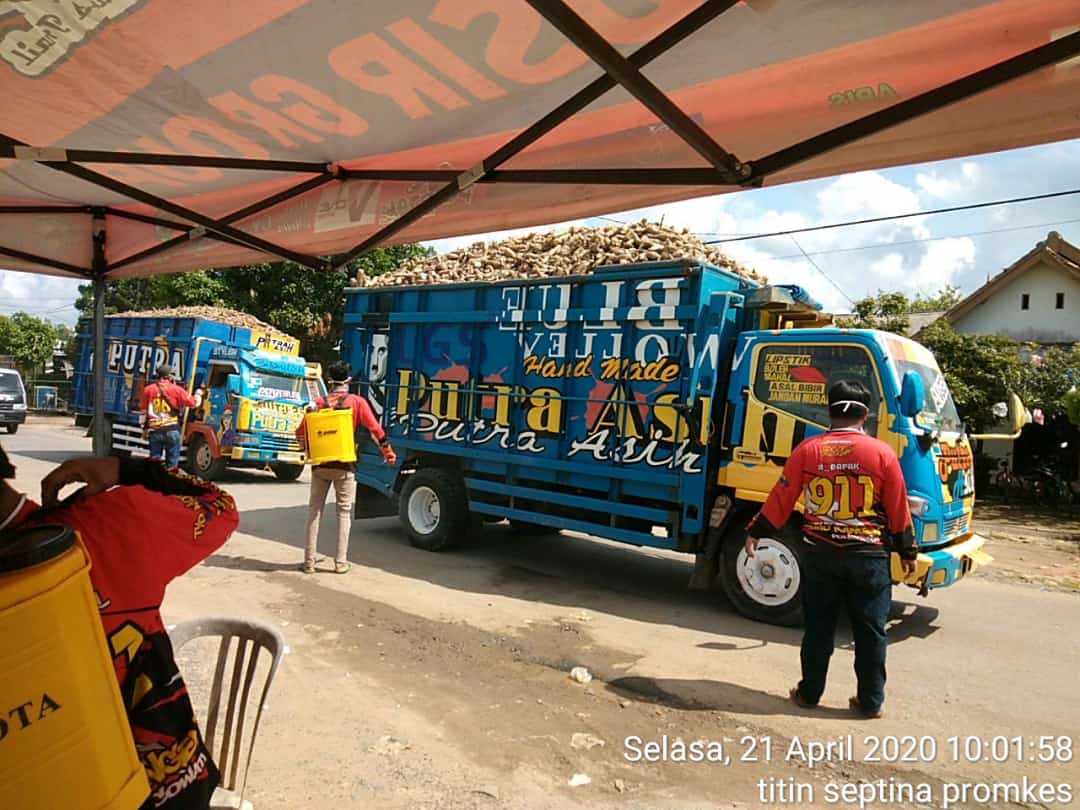 Penyemprotan Disinfektan pada Kendaraan yang melintas dan masuk ke kampung Poncowati, Terbanggi Besar
