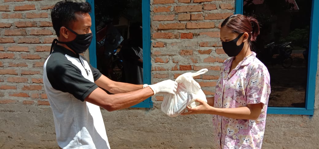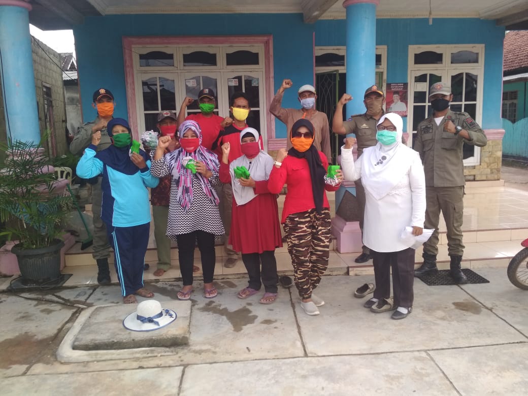 Kegiatan Penyemprotan dan pembagian masker di kampung Kotagajah Timur, Kota Gajah