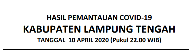 HASIL PEMANTAUAN COVID-19 KABUPATEN LAMPUNG TENGAH : 10 APRIL 2020 - PUKUL 22.00 WIB