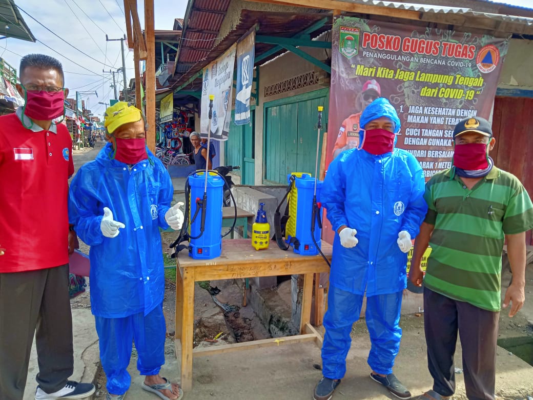 Kegiatan Penyemprotan Disinfektan di kampung Bumi Raharjo kecamatan Bumi Ratu Nuban