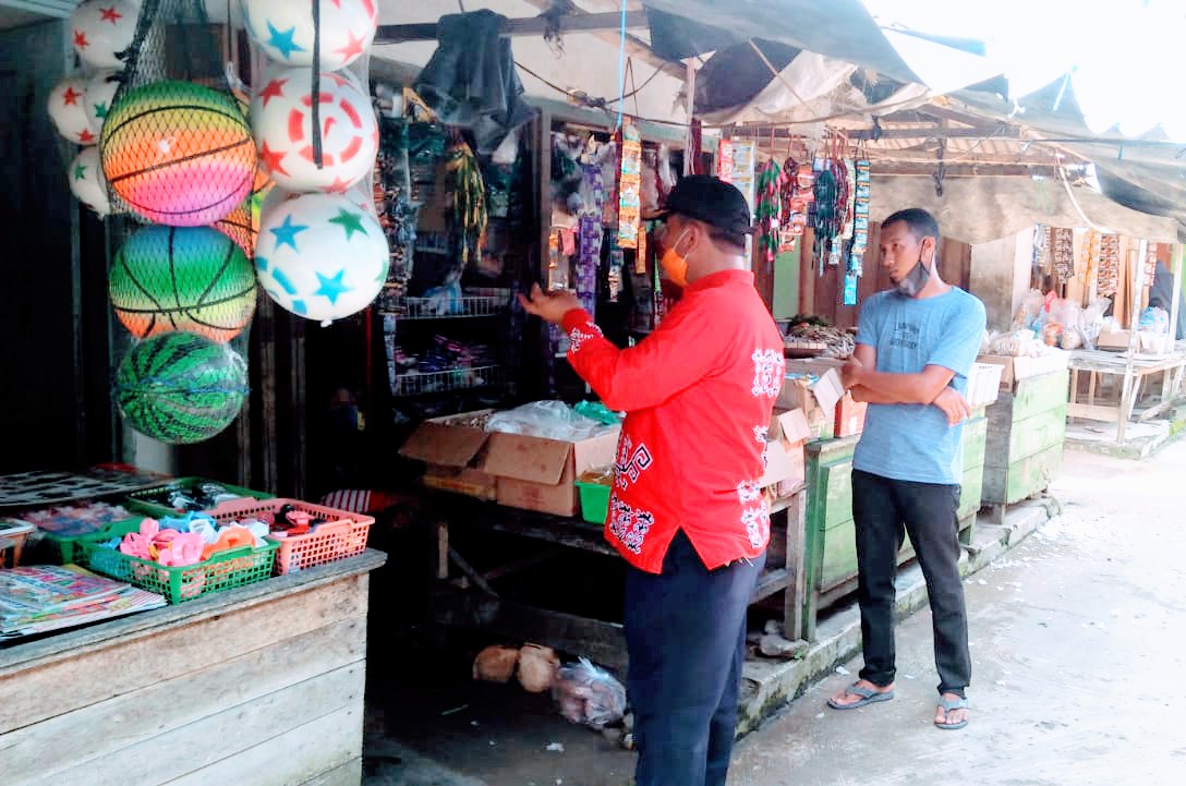 Tim Gugus Tugas Covid-19 Bumi Nabung Menghimbau Warga Tentang Wabah Covid-19 di Pasar Bumi Nabung