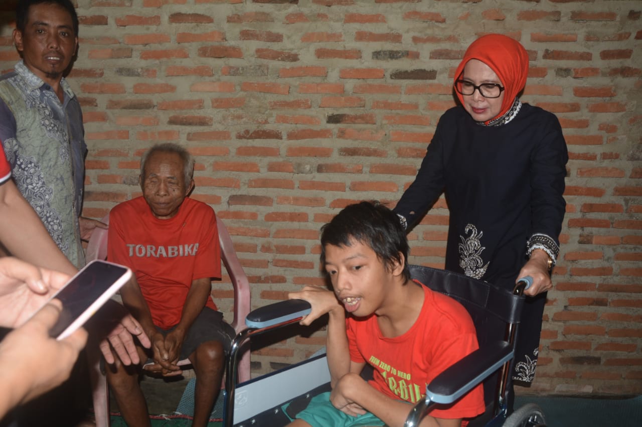 Ibu Bupati Lampung Tengah Eliya Lusiana Loekman Berikan Bantuan Kursi Roda Kepada Salah Satu Warga Di Kampung Bumi Ratu
