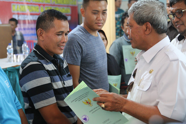 Bupati Lampung Tengah Bagikan Sertifikat PTSL Kepada Masyarakat Kampung Adijaya