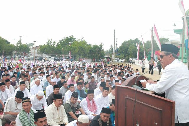 Bupati LT Loekman.Djoyosoemarto Sholat Idhul Adha Di Lapangan Masjid Al.- Hidayah Adi Jaya