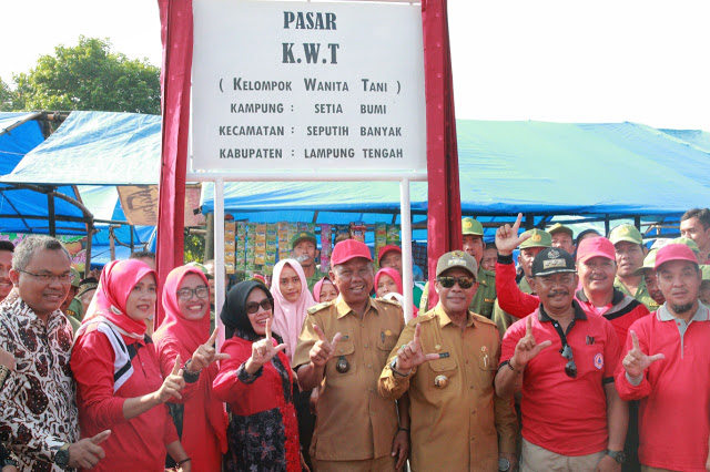 BUPATI LAMTENG BERSAMA KETUA FORUM KWT RESMIKAN PASAR KWT SETIA BUMI