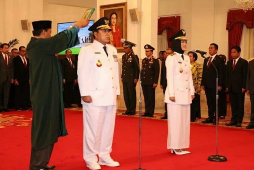 Bupati LT Loekman Dkoyosoemarto - Sambut Gubernur dan Wakil Gubernur Lampung