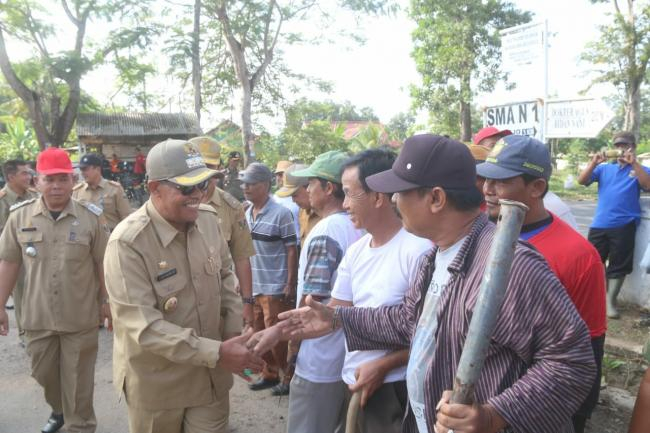 Bupati LT Loekman Djoyosoemarto - Gotong Royong Perbaikan Jalan Raya Rawan Banjir