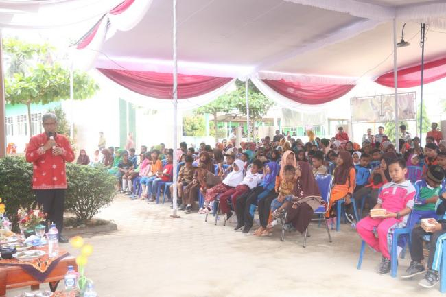 Bupati Lampung Tengah Loekman Djoyosoemarto - BERIKAN BANTUAN PERALATAN SEKOLAH KEPADA ANAK YATIM PIATU
