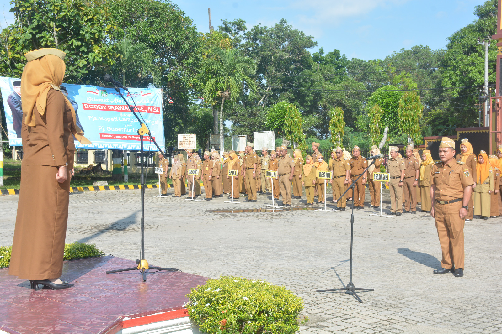 DR. Candra Puasati, S.Pd, M.Pd Pimpin Apel Mingguan di Lapangan Kantor Bupati Lampung Tengah
