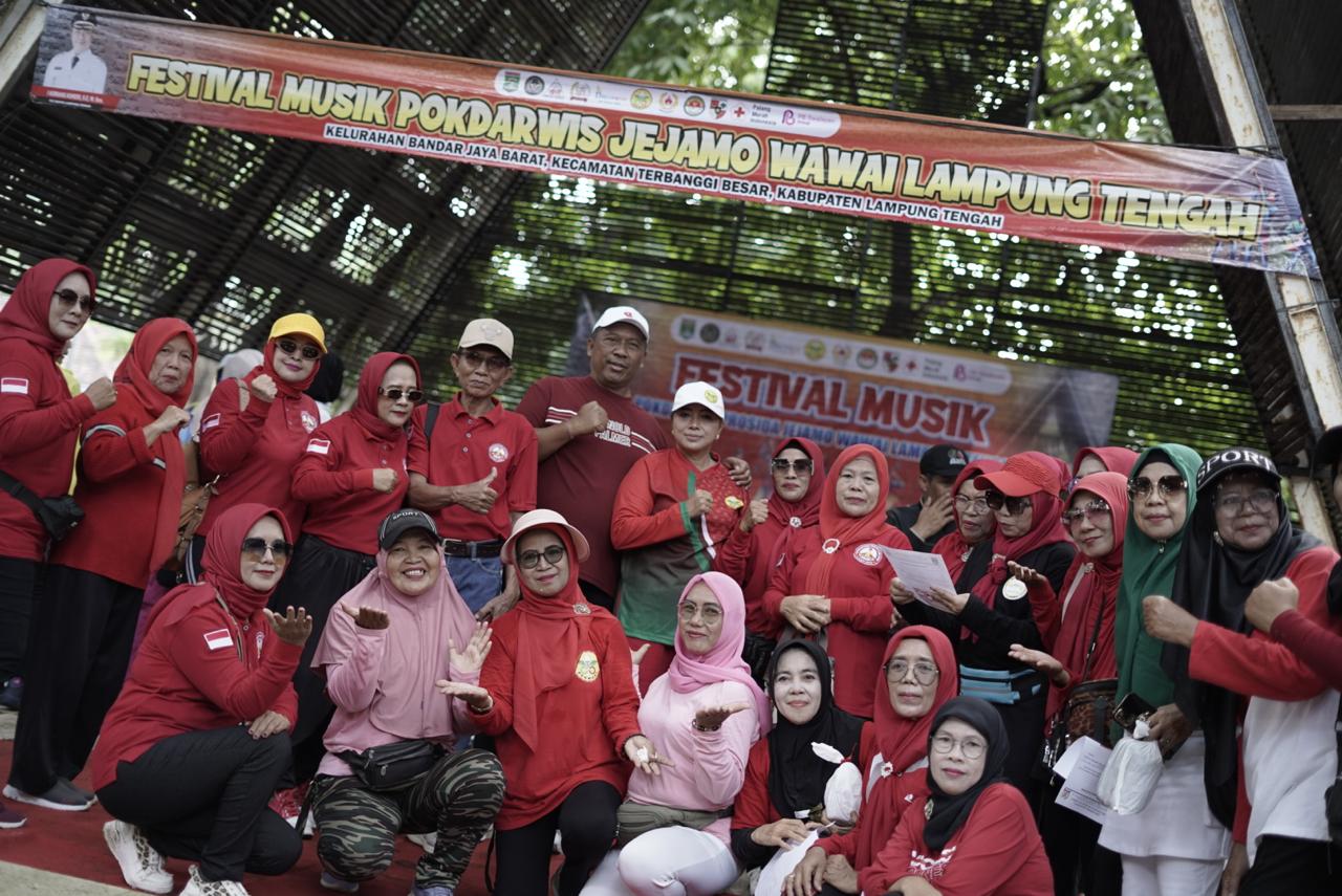 Pelaksana Tugas (Plt.) Bupati Lampung Tengah, I Komang Koheri, S.E., M.Sos., didampingi Ketua TP PKK Lampung Tengah, Ni Ketut Dewi Nadi, S.T., M.Sos., menghadiri Festival Musik Pokdarwis Jejamo Wawai Lampung Tengah, bertempat di taman Gotong royong Prosida.