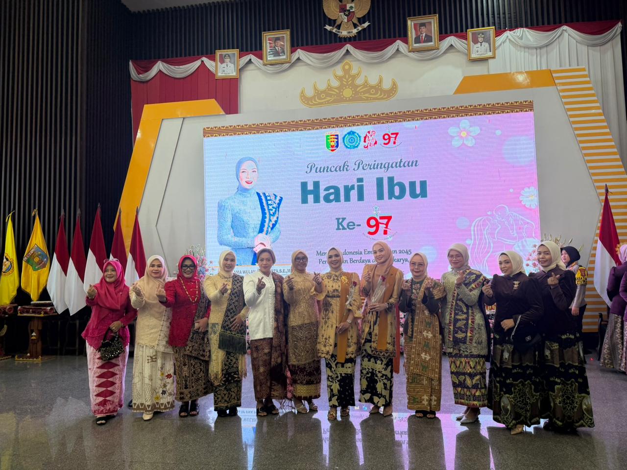 Pelaksana Tugas (Plt) Bupati Kabupaten Lampung Tengah I Komang Koheri didampingi oleh Ketua Gabungan Organisasi Wanita (GOW) sekaligus Ketua I TP PKK Kabupaten Lampung Tengah menghadiri Peringatan Hari Ibu ke-97 Tahun 2025.