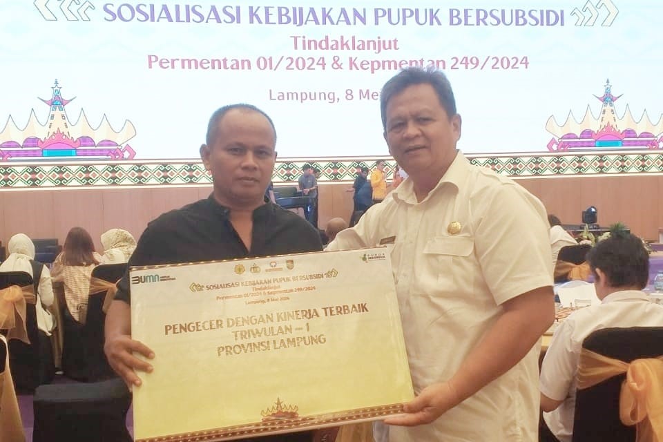 Pemkab Lampung Tengah Menerima Piagam Penghargaan Kinerja Terbaik Pengecer Pupuk se-Provinsi Lampung