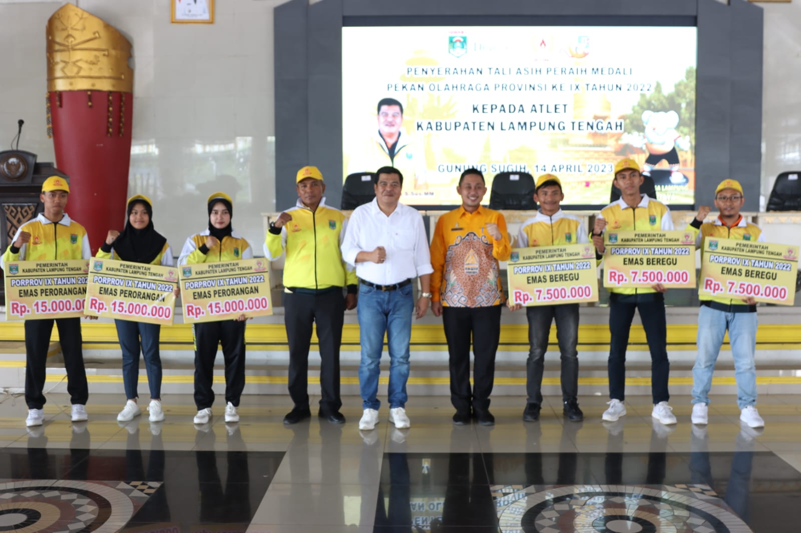 Pemberian Tali Asih Peraih Medali Pekan Olah Raga Provinsi Ke-IX Tahun 2022 Kepada Atlet Kabupaten Lampung Tengah
