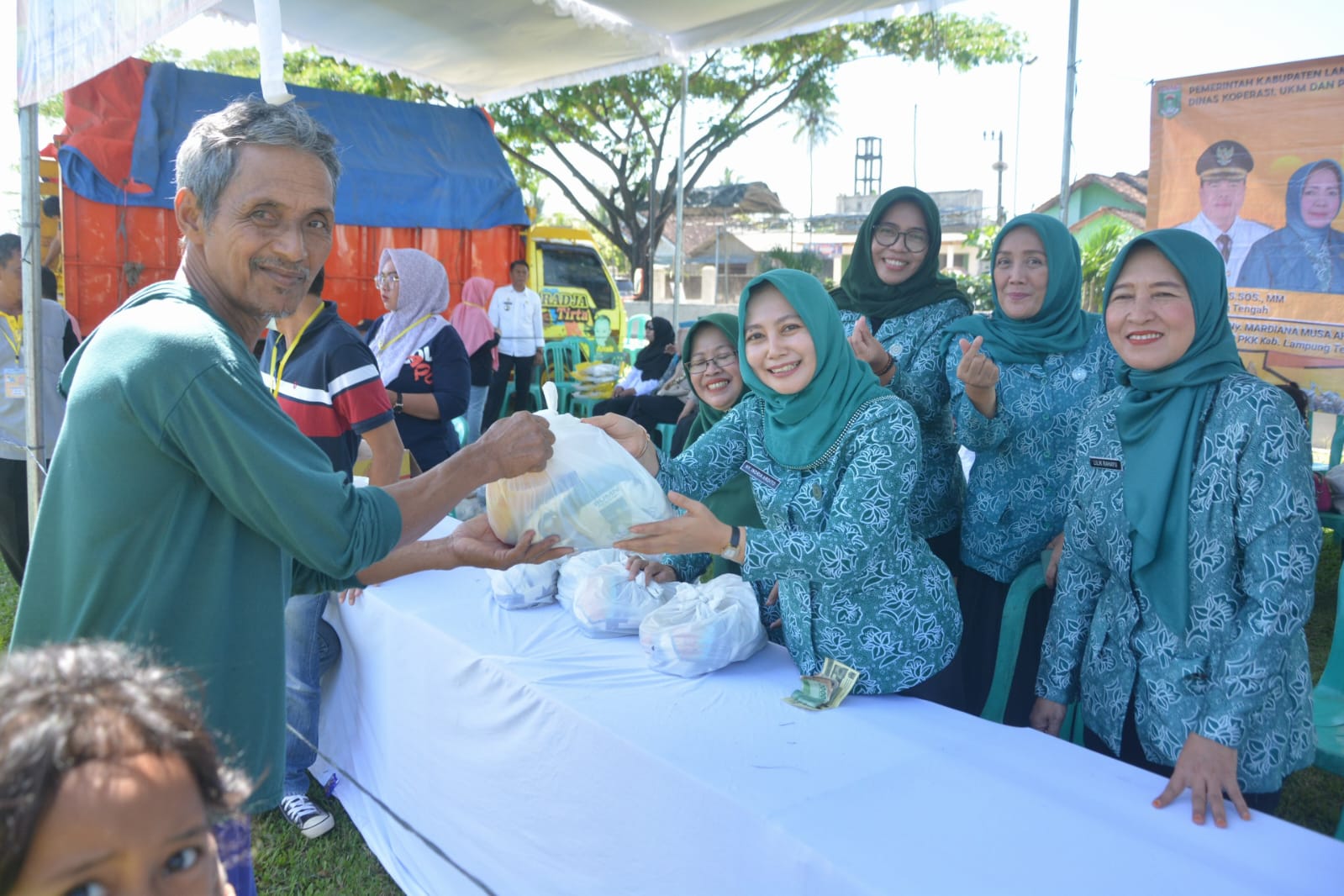Ketua 1 TP PKK Indria Ardito Wijaya Membuka Resmi Program Operasi Pasar Murah di Wilayah Barat Lamteng