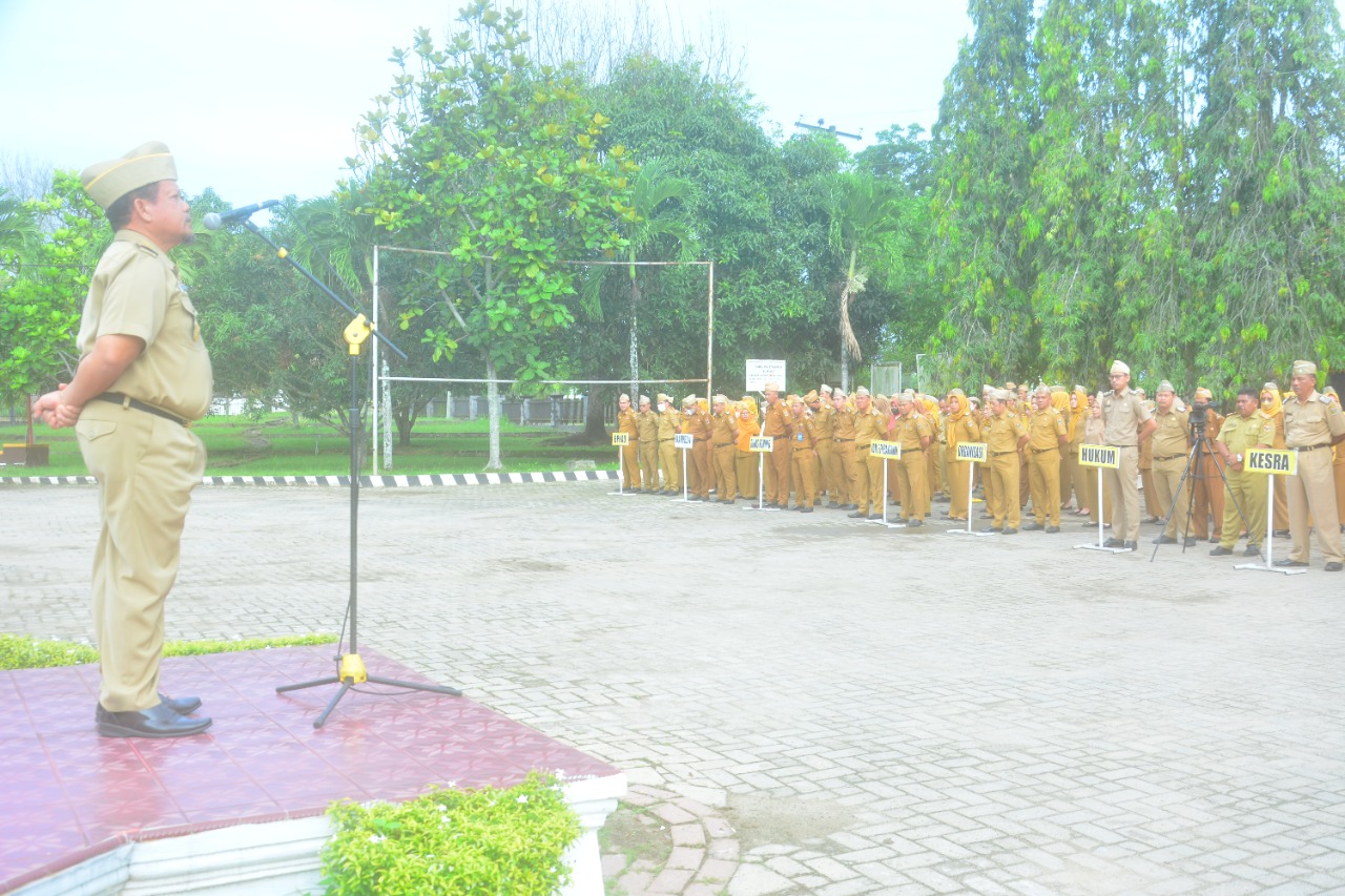 Asisten Administrasi Umum Drs. EKO DIAN SUSANTO, M.I.P. Pimpin Apel Minguan di Halaman Kantor Bupati Lampung Tengah
