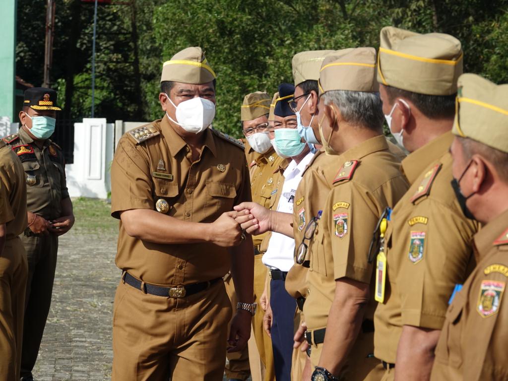 Bupati Lampung Tengah Pimpin Apel Perdana di Lingkungan Pemerintah Kabupaten Lampung Tengah di Lapangan Merdeka Gunung Sugih