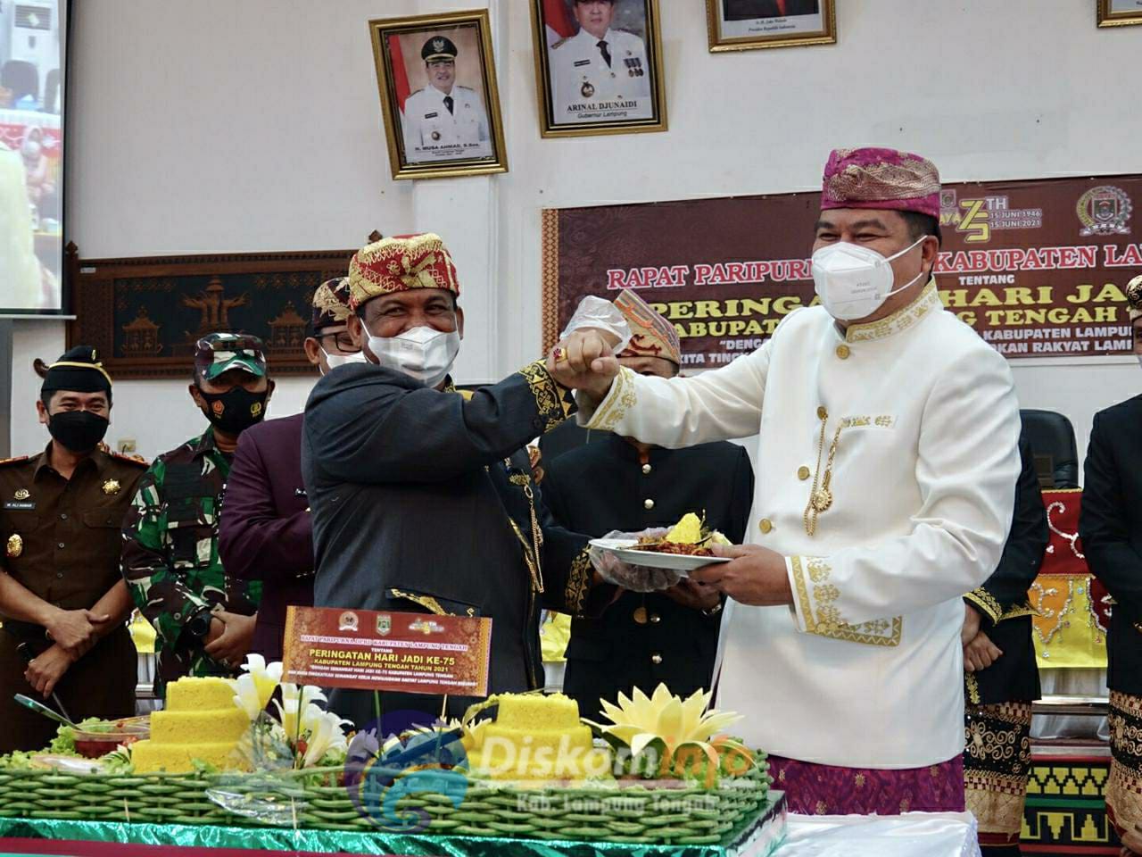 Bupati dan Wakil Bupati Kabupaten Lampung Tengah Hadiri Rapat Paripurna Istimewa Peringatan HUT Kab. Lampung Tengah Ke-75