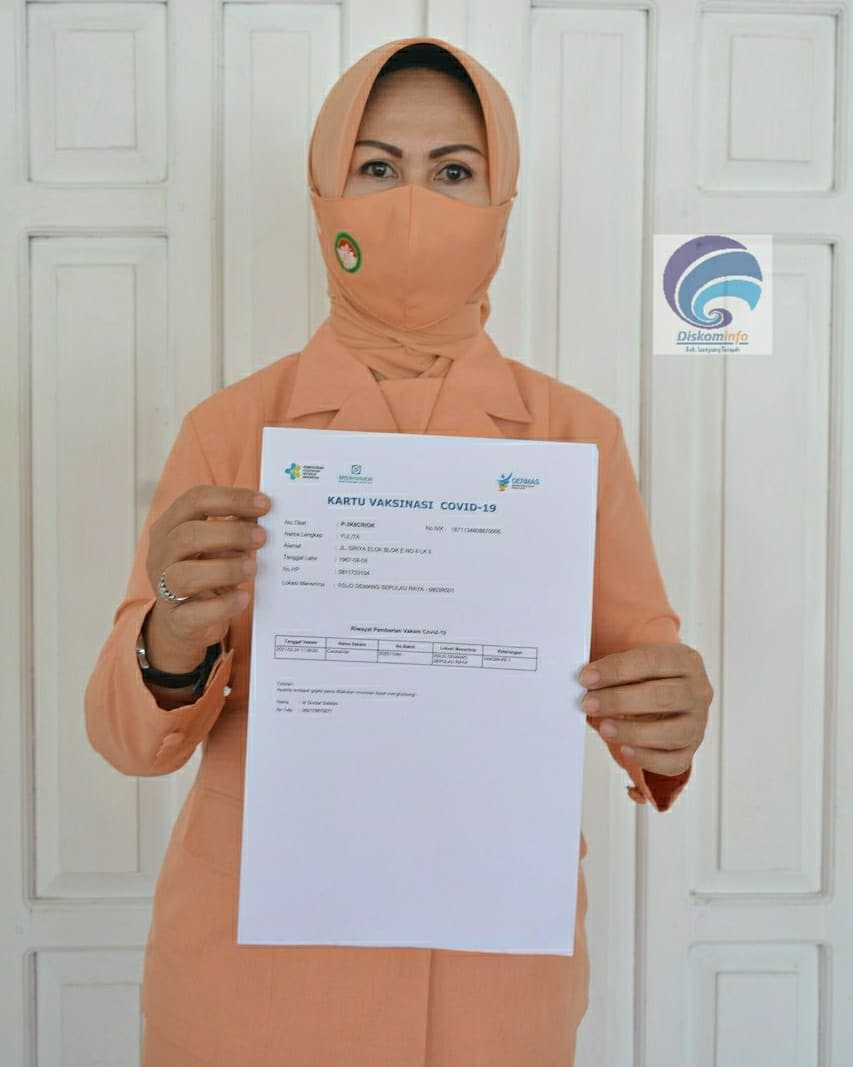 Ketua Dharma Wanita Persatuan Kabupaten Lampung Tengah Ny. Yulita Nirlan Laksanakan Vaksinasi Sinovac Yang Ke-2