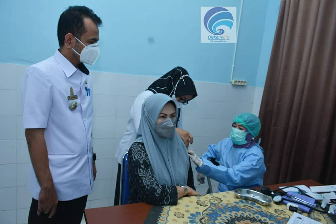 Bupati dan Wakil Bupati Lampung Tengah Tinjau Langsung Pelaksanaan Vaksin Sinovac Untuk Para Pedagang Di Plaza Bandar Jaya