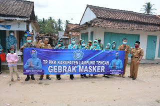 Pjs. Ketua Tim Penggerak PKK Kab. Lampung Tengah Hj. Rusdiana Adi Erlansyah Adakan Gebrak Masker Untuk Wilayah Tengah