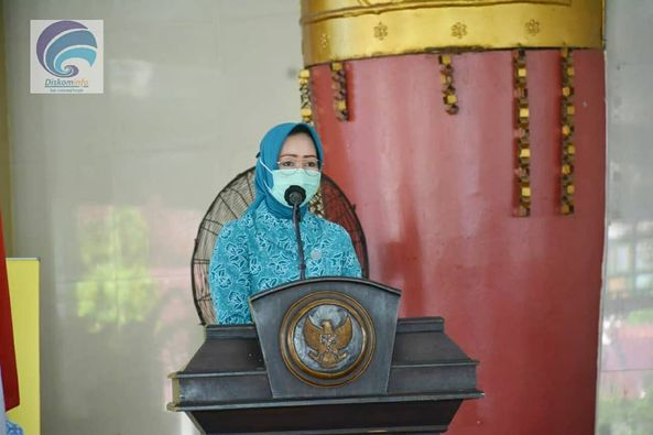 Pjs. Ketua TP PKK Lampung Tengah Hj. Rusdiana Adi Erlansyah dan TP PKK Hadiri Acara Gebrak Masker Untuk Lampung Tengah