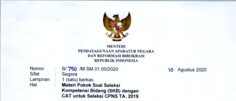 Materi Pokok Soal Seleksi Kompetensi Bidang (SKB) dengan CAT untuk Seleksi CPNS TA. 2019