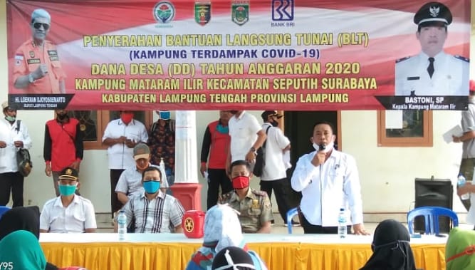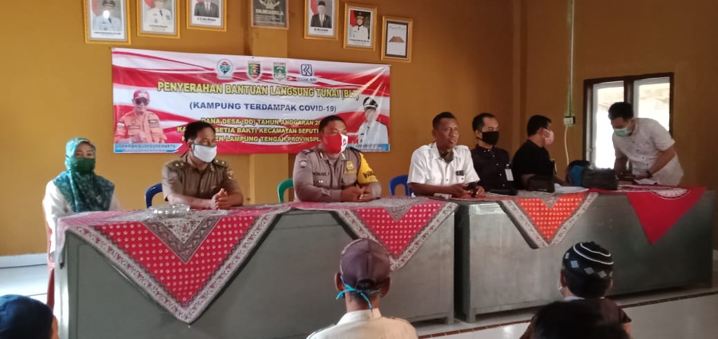 Pembagian dana BLT kampung bersama BRI Kota Gajah di balai kampung Sumberejo dan penyuluhan "New Normal", Kota Gajah