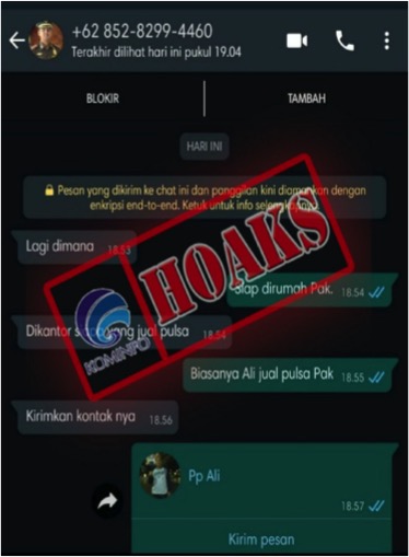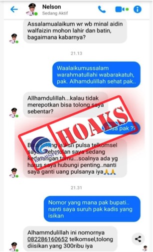 [HOAKS] Akun WhatsApp Mengatasnamakan Mantan Kasatpol PP Kabupaten Inhu Minta Pulsa