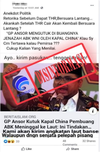 [DISINFORMASI] Kutuk Kapal China Pembuang ABK, GP Ansor akan Kirim Angkatan Laut Banser