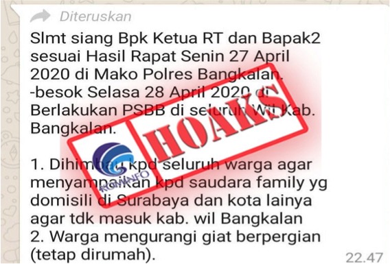 [HOAKS] Pemberlakuan PSBB di Seluruh Wilayah Kabupaten Bangkalan Mulai Tanggal 28 April 2020