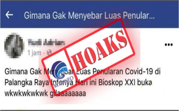 [HOAKS] Bioskop di Palangka Raya Kembali Buka di Tengah Persebaran Covid-19