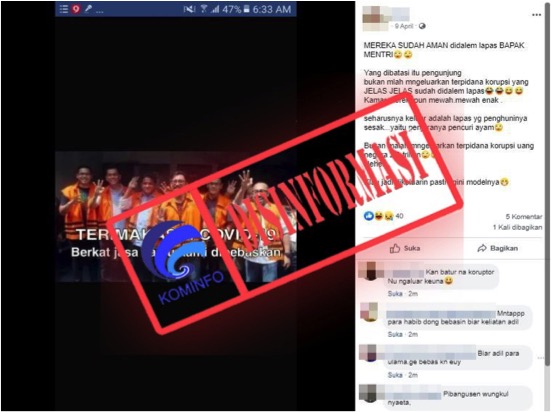 [DISINFORMASI] Karena Pandemi COVID-19, yang Seharusnya Dibebaskan Narapidana Pencuri Ayam, Bukan malah Terpidana Koruptor