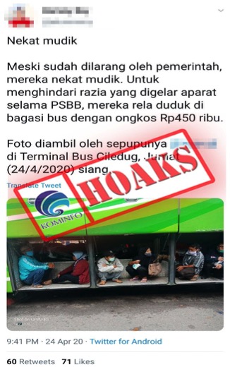 [HOAKS] Pemudik Rela Bayar Rp450 Ribu untuk Sembunyi di Bagasi Bus