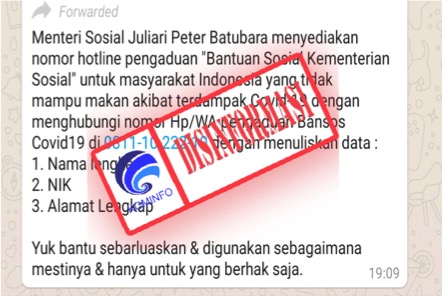 [DISINFORMASI] Masyarakat Tidak Mampu dan Terdampak Covid-19 Harap Menghubungi Nomor Ini untuk Menerima Bantuan