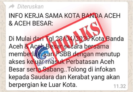[HOAKS] Info PSBB dan Penutupan Jalan di Kota Banda Aceh dan Aceh Besar