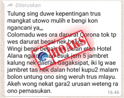 [HOAKS] Pesan Berantai Aksi Begal di Colomadu Karanganyar saat Corona