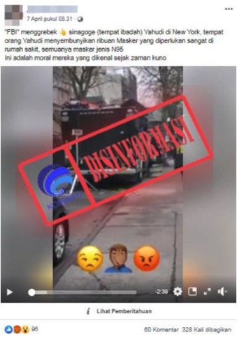 [DISINFORMASI] FBI Menggerebek Sinagoge Yahudi di New York, Tempat Orang Yahudi Menyembunyikan Ribuan Masker