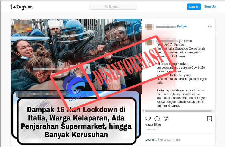 [DISINFORMASI] Foto "Dampak 16 Hari Lockdown di Italia"