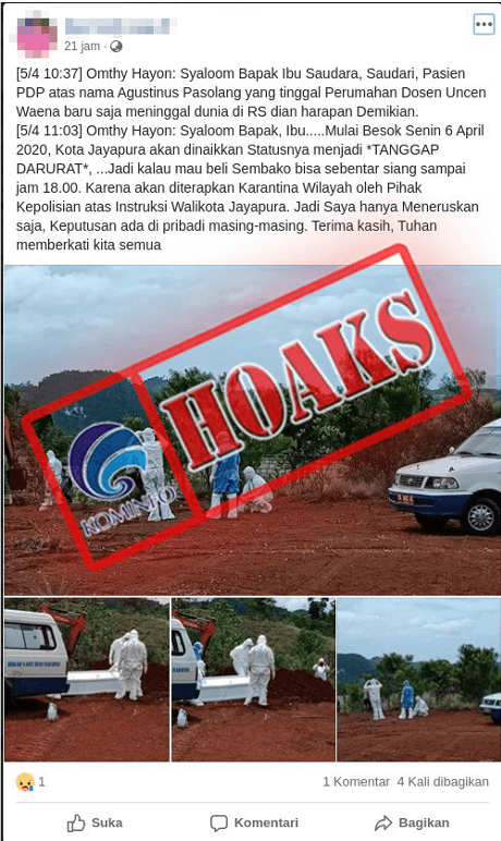 [HOAKS] Senin 6 April 2020, Kota Jayapura akan Dinaikkan Statusnya Menjadi Tanggap Darurat