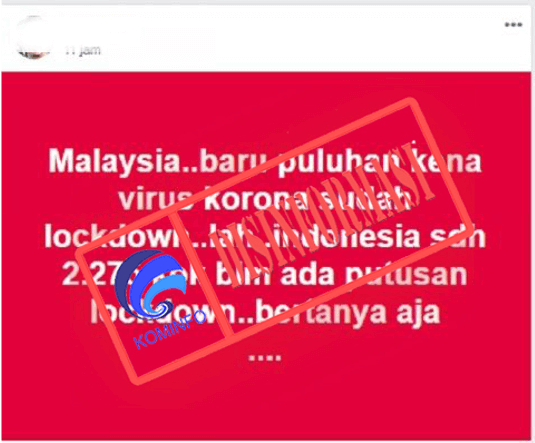 [DISINFORMASI] Kasus Positif Corona Masih Puluhan, Malaysia Berlakukan Lockdown