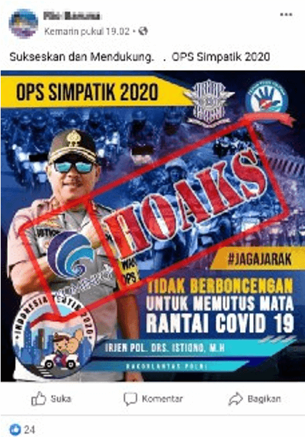 [HOAKS] OPS Simpatik 2020 "Tidak Berboncengan untuk Memutus Mata Rantai Covid-19"