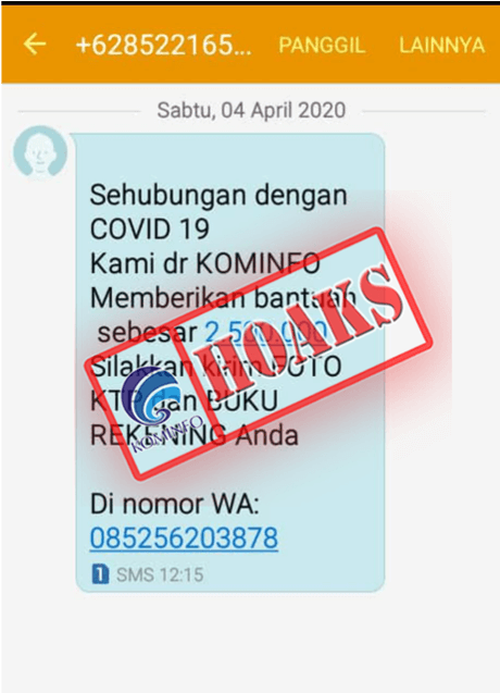 [HOAKS] Pesan Berantai Bantuan Dana dari Kominfo untuk Masyarakat Terdampak Covid-19