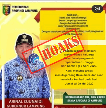 [HOAKS] Ungkapan Bahagia Gubernur Lampung Untuk Perantau dan Informasi Penutupan Bakauheni 7 April s/d 29 Mei 2020