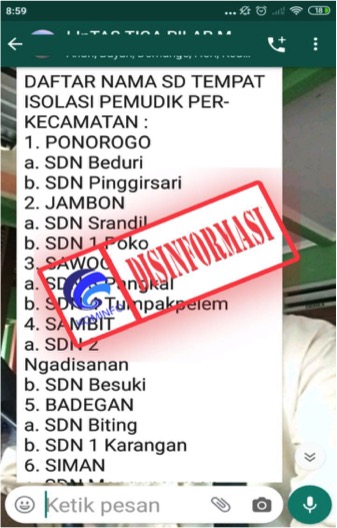 [DISINFORMASI] Puluhan Gedung SD Di Ponorogo Dijadikan Tempat Isolasi Pemudik